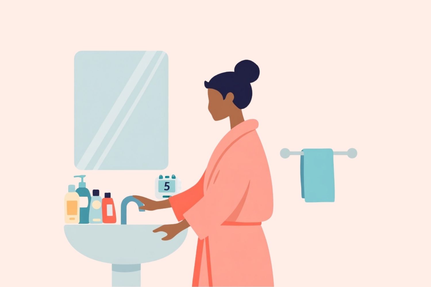 Stack it with an existing habit. Right after brushing teeth works for most women. The bathroom trip is already happening. Add five minutes before walking out.